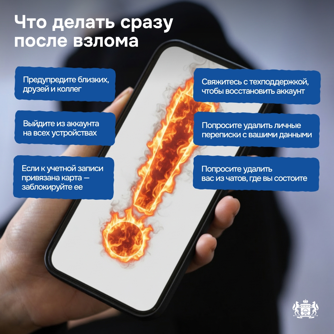 Важно действовать немедленно! В карточках мы рассказали, что делать, если взлом уже произошел, и как защитить свои соцсети.