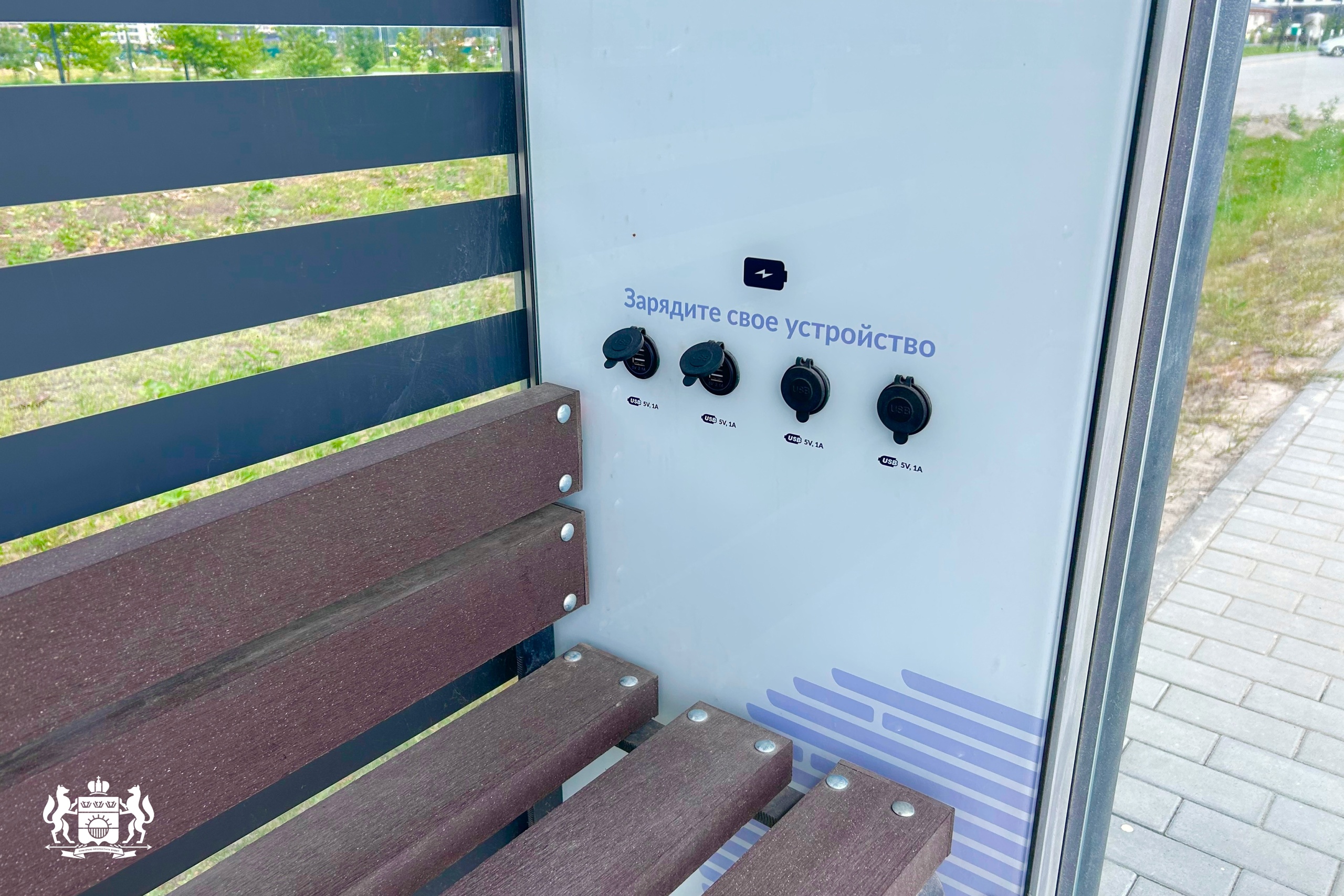 Один павильон будет выполнен в цвете «черный муар» с блестками из стекла и металлическим каркасом и подсветкой. Установят камеры, табло с расписанием автобусов с LCD-монитором, гнезда usb-зарядки, кнопку вызова экстренных служб и Wi-Fi.