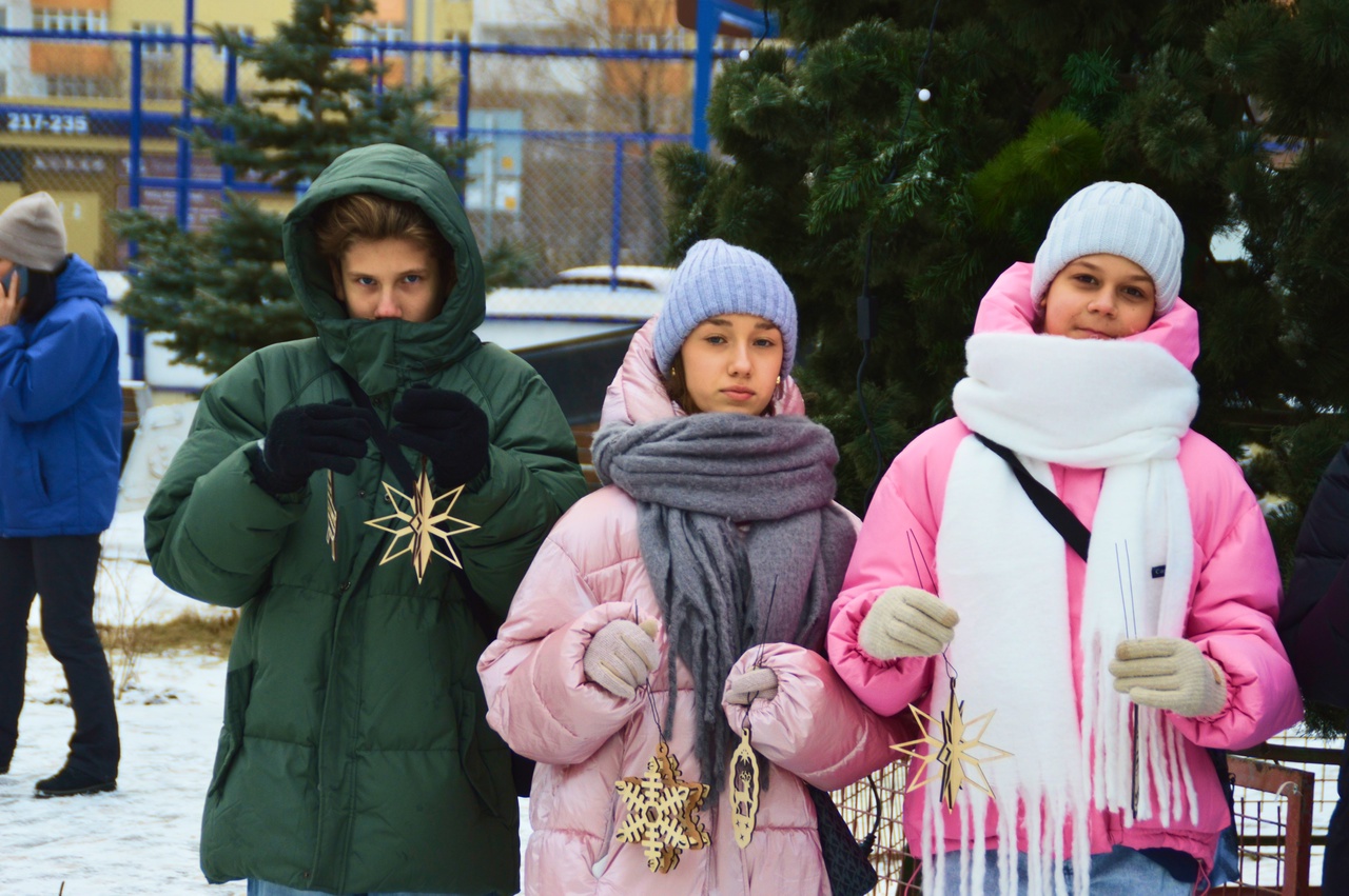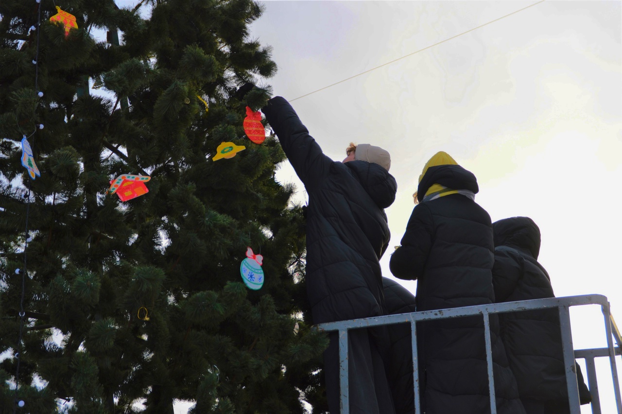 Ученики школ № 60 и 92 сами смастерили игрушки: сделали фигурки животных, звезд и других праздничных атрибутов. Полюбоваться елкой можно в Тюмени в Восточном округе.