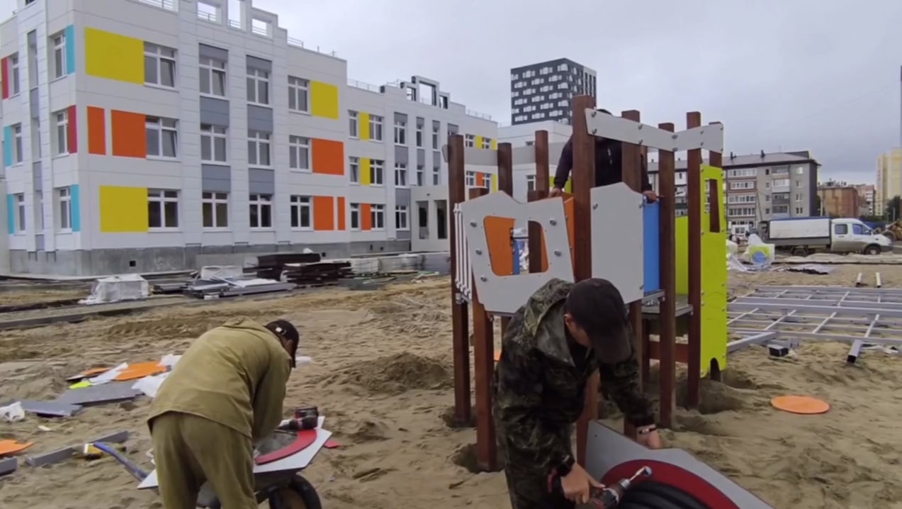 Сейчас строители занимаются внутренней отделкой помещений: укладывают плитку, клеят обои и монтируют систему электроснабжения. Снаружи устанавливают детские площадки, прокладывают дорожки и ставят ограждения.