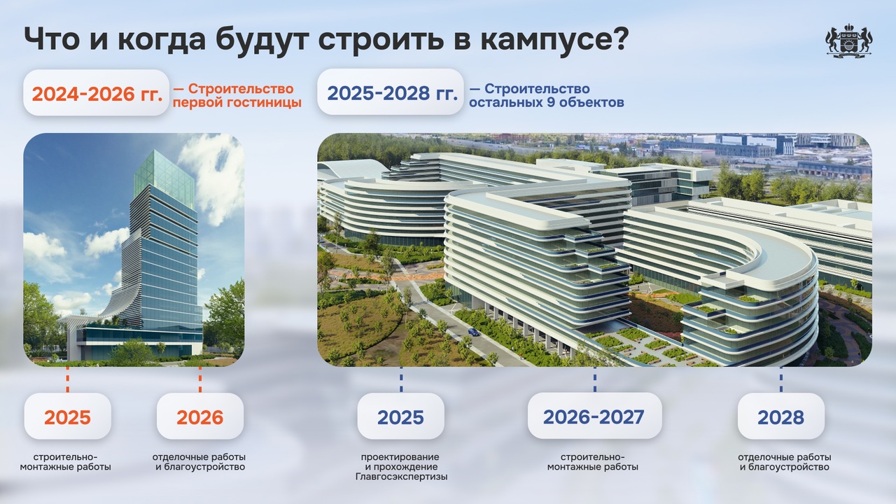 Как поэтапно будут возводить объекты Межуниверситетского кампуса, смотрите на карточке. Напомним, его построят в рамках нацпроекта «Наука и университеты».
