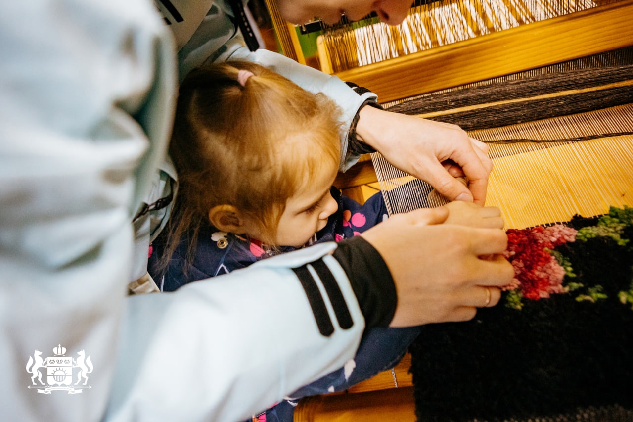 На мероприятии гостей ждало чаепитие с купчихой и хозяйкой музея истории крестьянского быта. Опытные мастерицы учили повязывать жички — короткие шерстяные нити, а хранитель истории Александр рассказывал о ковре, который создавали 50 девушек.
