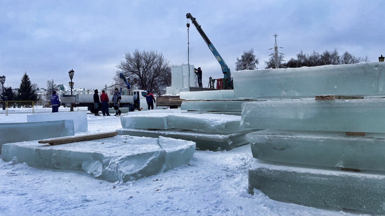 Мастера уже приступили к делу — доставили первые глыбы чистого льда, из которых совсем скоро вырастут сказочные фигуры и сияющие инсталляции.