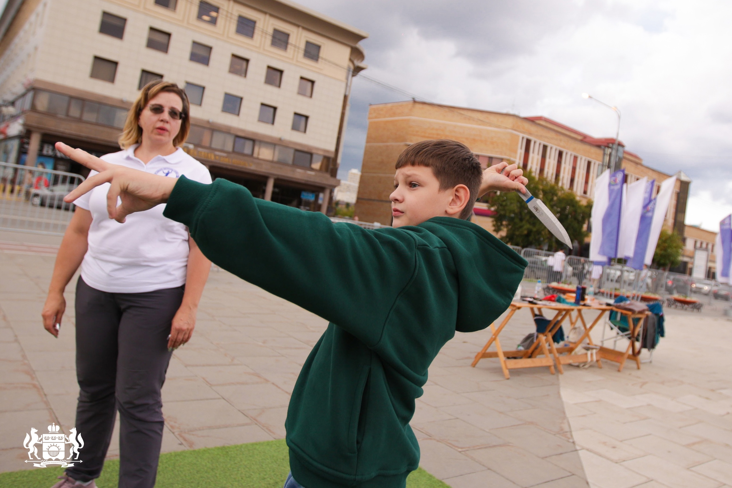 Здесь для тюменцев прошли выставки военных экспонатов и автоклуба «Ретро-Классика». Гости мероприятия играли в шахматы и участвовали в соревнованиях по метанию ножа.