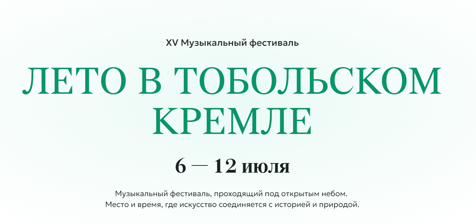 С 6 по 12 июля в старейшем сибирском городе пройдет 15-й опен-эйр. Среди хедлайнеров события Сергей Бурунов, Сергей Шакуров, Александра Ребенок и другие известные артисты. Они выступят вместе с творческими коллективами тюменской филармонии в белоснежных стенах Тобольского кремля на большом концерте «Ключ к Сибири».
