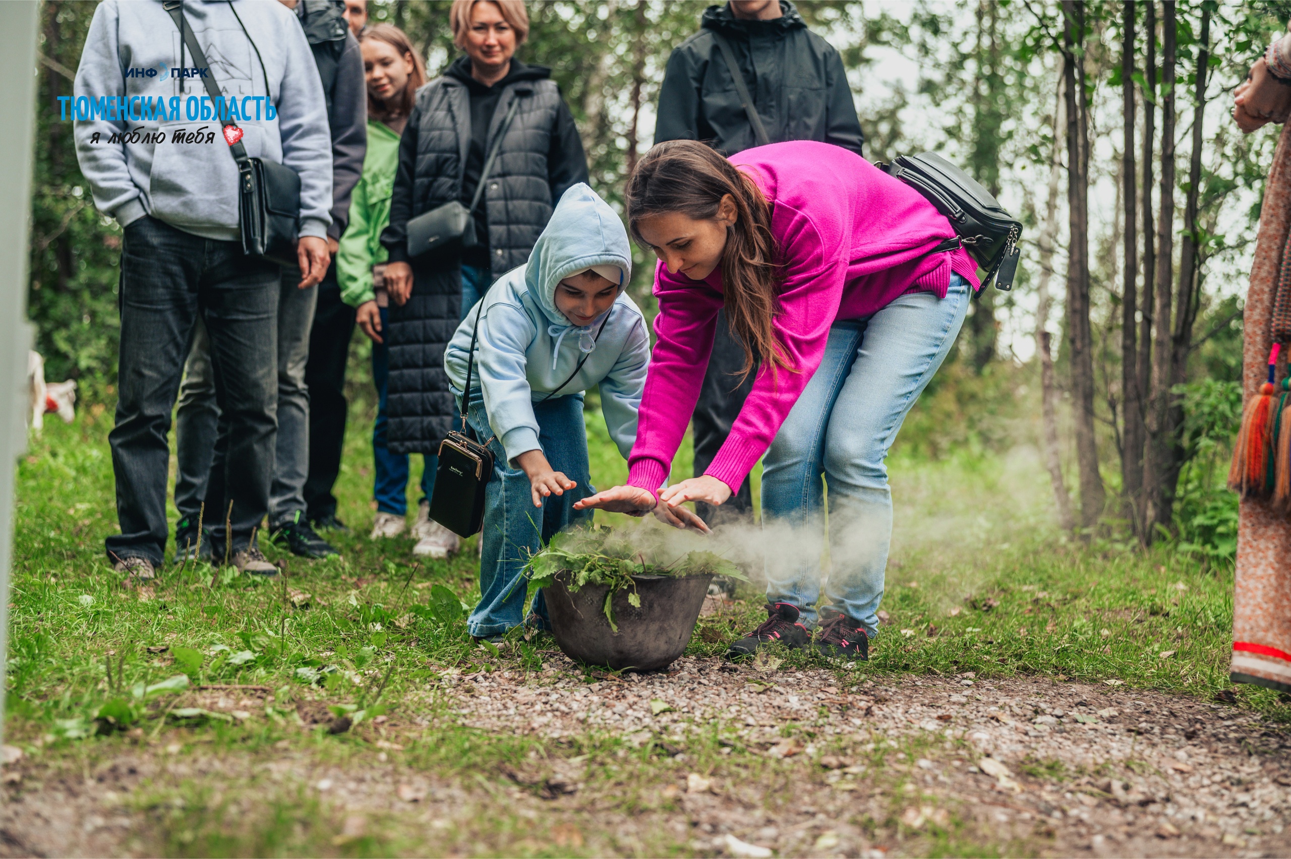Земляки поучаствовали в традиционном обряде очищения, поиграли в перетягивание палки на шкурах оленя, прыжках через нарты, попробовали ароматный чай из таежных трав и даже научились делать берестяные ложки.